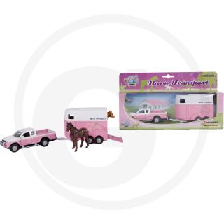 Igrača avto in prikolica za prevoz konjev