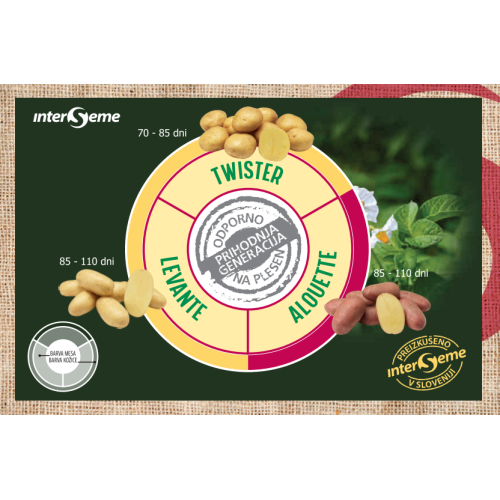 Namen: veliki pridelki, sorta odporna na udarce pri izkopu, ima dobre kulinarične lastnosti