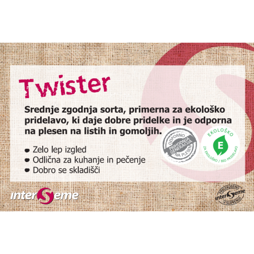 Posebnosti/lastnosti/nasvet: sorta je popolnoma odporna na plesen, tako na listih kot gomolju in precej odporna na viruse in krastavost. Dobro se skladišči.