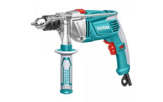 Električni udarni vrtalnik TOTAL TG111136 je idealen za vrtanje lukenj v lesu, kovini, plastiki, opeki in lahkih betonskih materialih, ter privijanje in odvijanje pritrdilnih elementov in vijakov. Vrtalnik je opremljen z motorjem z močjo 1010W in udarnim mehanizmom v obliki raglje, kar mu omogoča, da se spopada z najtršimi površinami.
